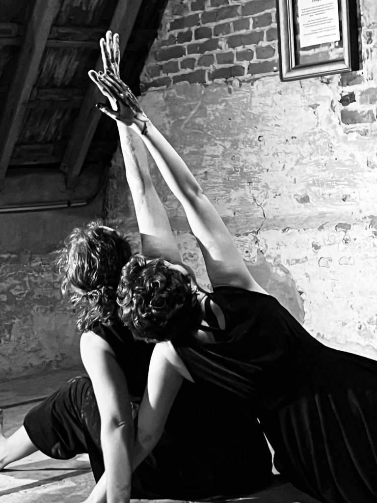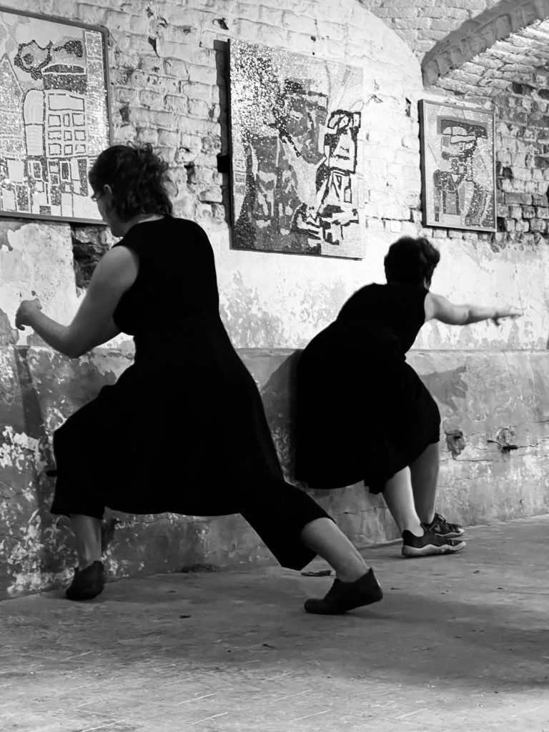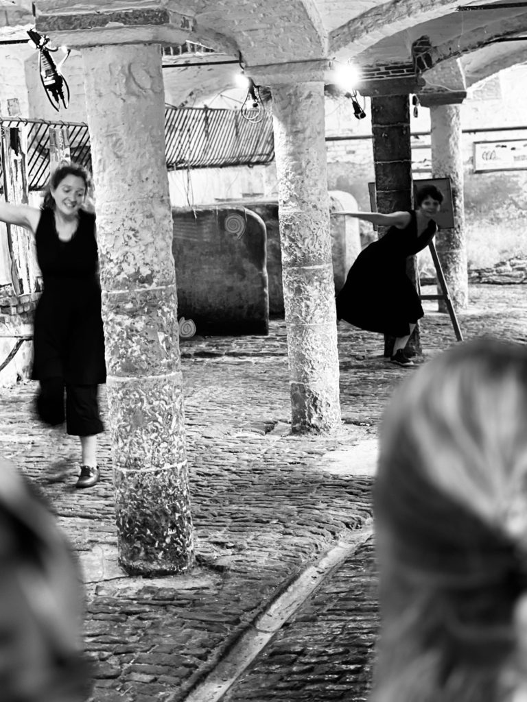 Par des jeux de corps en mouvement, des ombres qu’ils projettent et des traces qu’ils laissent, les deux artistes en présence interrogent ce temps qui passe inexorablement.